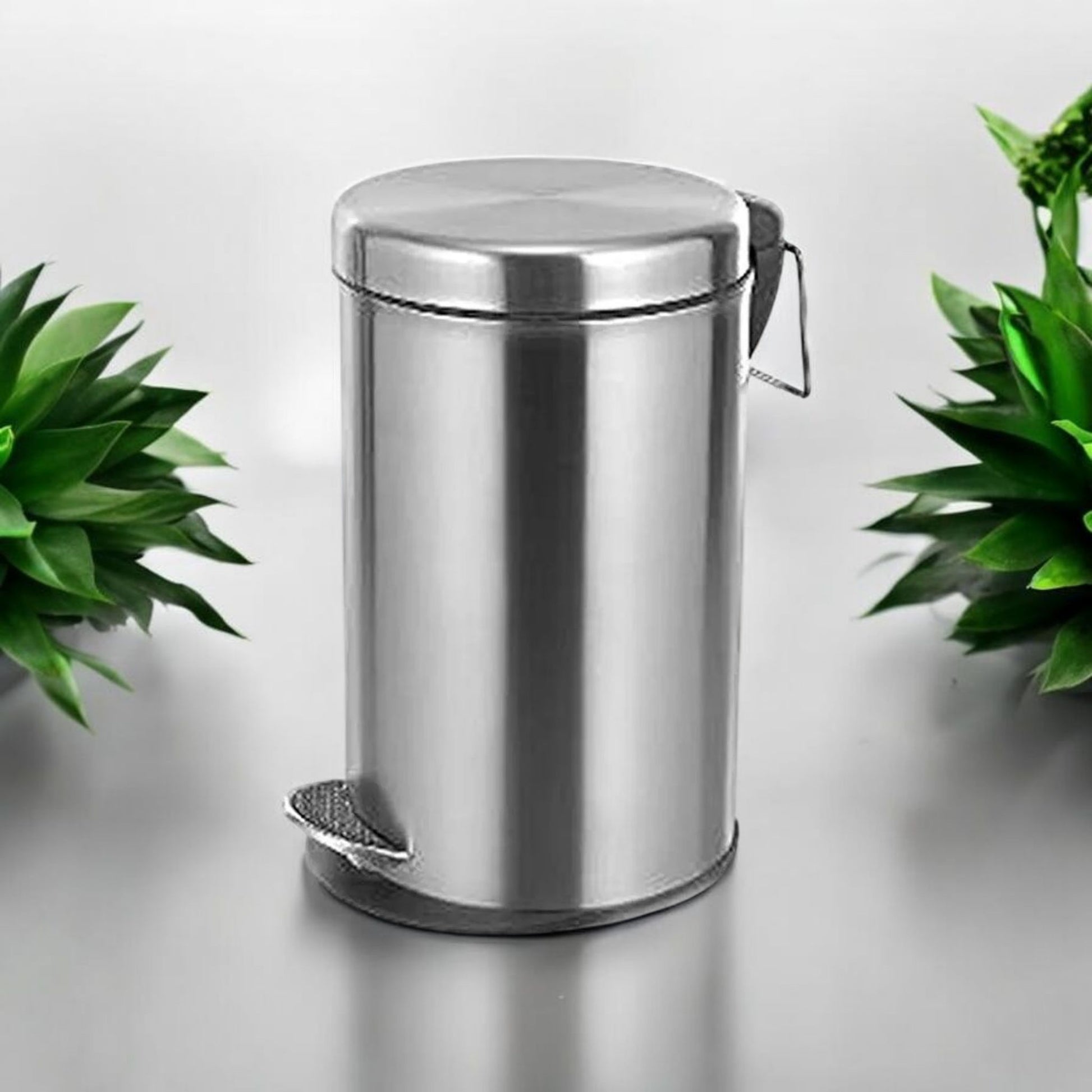 Maintain hygiene effortlessly with this compact stainless steel pedal dustbin. Designed with a hands-free pedal mechanism for easy and sanitary waste disposal, this bin is perfect for kitchens, bathrooms, or offices. The brushed steel exterior is resistant to fingerprints and rust, while the inner bucket is removable for quick cleaning.