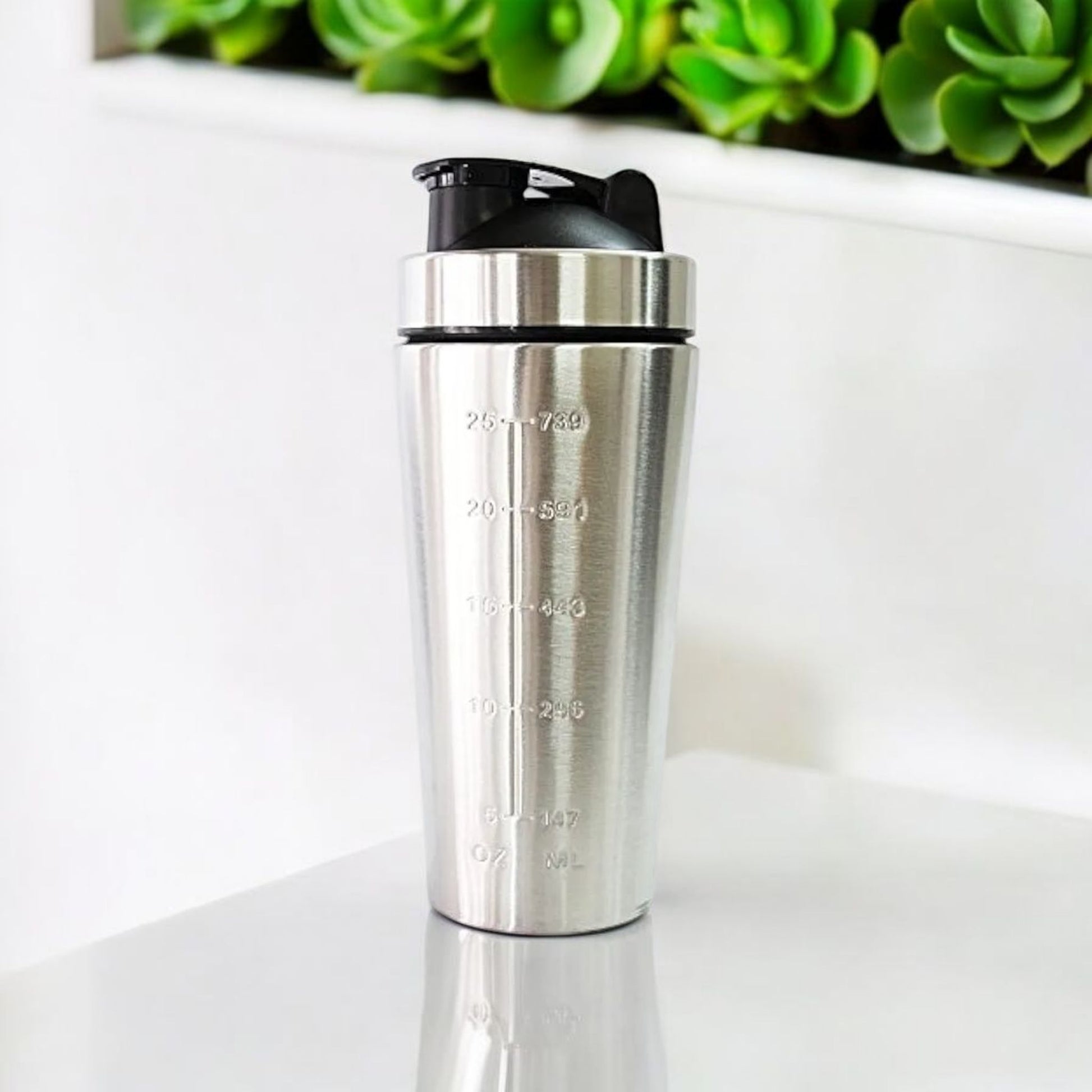 Mix your fitness goals with style using this Stainless Steel Protein Shaker Bottle. Engineered for durability and performance, this sleek bottle features a brushed steel body with easy-to-read volume markings for precise measurement. The BPA-free, secure flip-top lid ensures a leak-proof seal, while the ergonomic shape offers a comfortable grip. Whether you're blending protein shakes, smoothies, or pre-workout drinks, this shaker keeps you fueled and hydrated before, during, or after workouts. A must-have for gym-goers, athletes, and health-conscious individuals looking for a dependable, stylish solution.