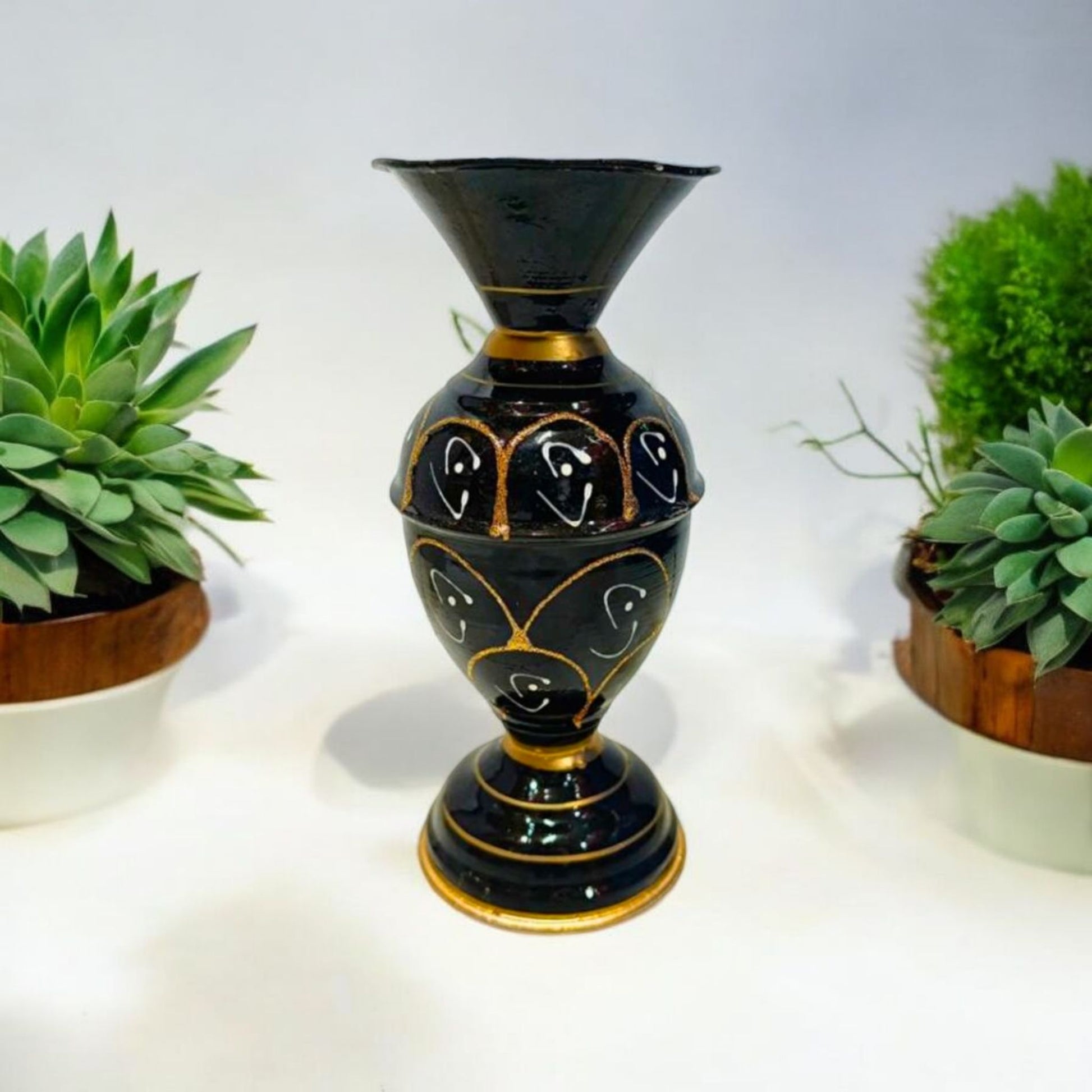 Add a touch of elegance to your home with the Stylish Black Decorative Vase with Gold accents. This beautifully crafted vase features a rich black surface embellished with intricate gold detailing, making it a striking centerpiece for any room. Made from high-quality materials, this vase is lightweight yet sturdy, perfect for showcasing fresh flowers or as a standalone decorative piece. Its timeless design seamlessly blends with various decor styles, from contemporary to traditional, enhancing the overall aesthetic of your living space. Whether placed on a coffee table or a shelf, it is sure to impress guests and elevate your home's charm. This affordable vase also makes for a thoughtful gift for special occasions, allowing your loved ones to enjoy its beauty.